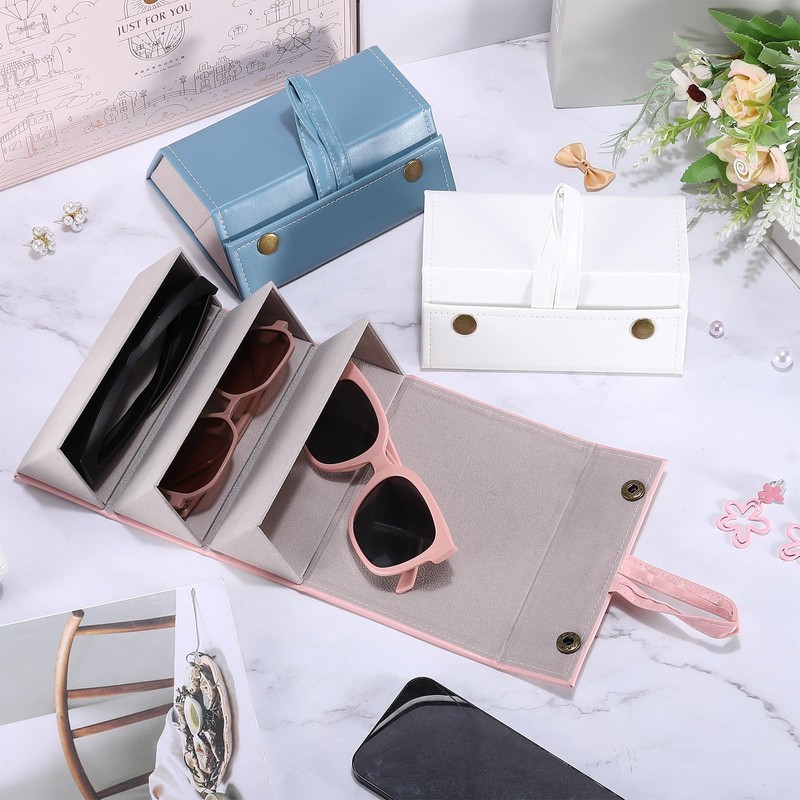 Featuring a 3-slot compartment and folding design, this travel sunglasses organizer is easy to store in drawers or suitcases to save space. When opened, it maximizes storage capacity for your convenience.