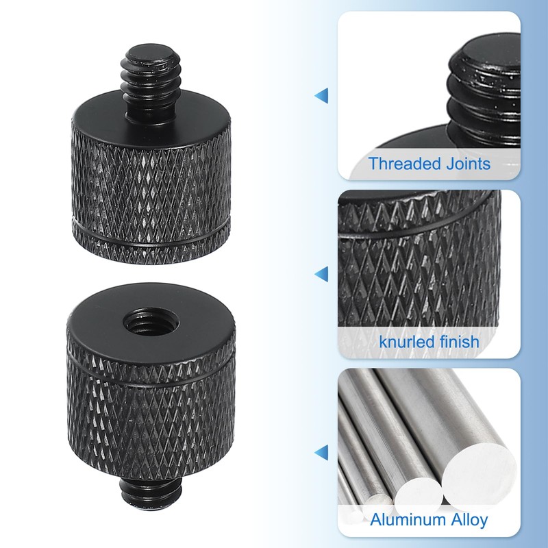 - Advantages: Tripod screw adapter made of aluminum alloy material, ensures reliable daily use, anti-rust, anti-corrosion, sturdy and durable, lightweight and compact, and easy to carry and use. Has a deep thread, knurled finish that provides excellent grip, is non-slip, deep and without burrs, complete thread, is easy to install, and is stable