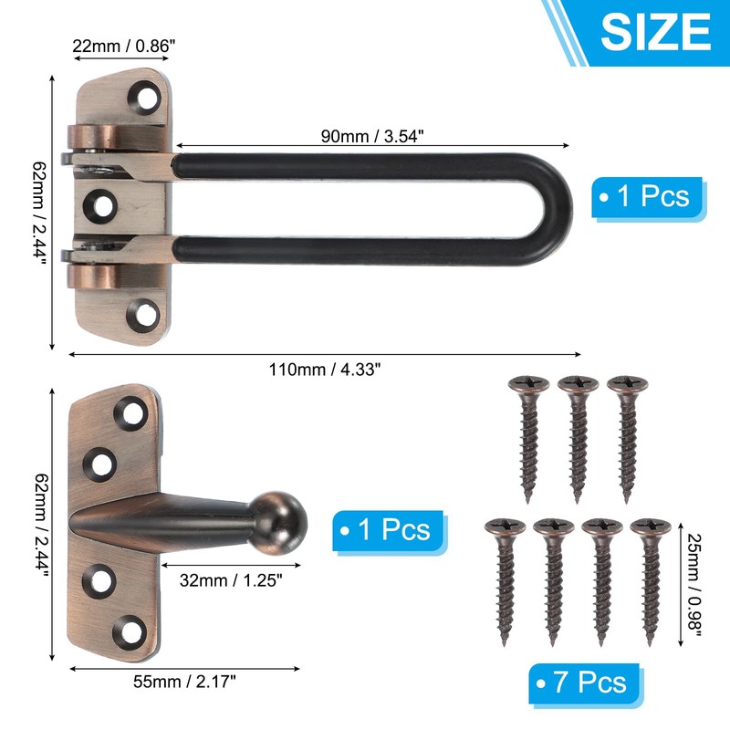 PATIKIL Türkettenschloss, Tür-Schwenkstangenschloss für Haussicherheit, Haustüren und Innentüren mit 7 Schrauben für Zuhause, Schlafzimmer, Hotel, Wohnung, Dunkelrot