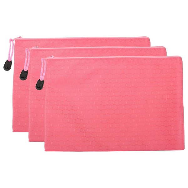 PATIKIL Waterproof Zipper File Bags, 3 Pack A5 Document Holders Pencil Pouch for Office, Pink