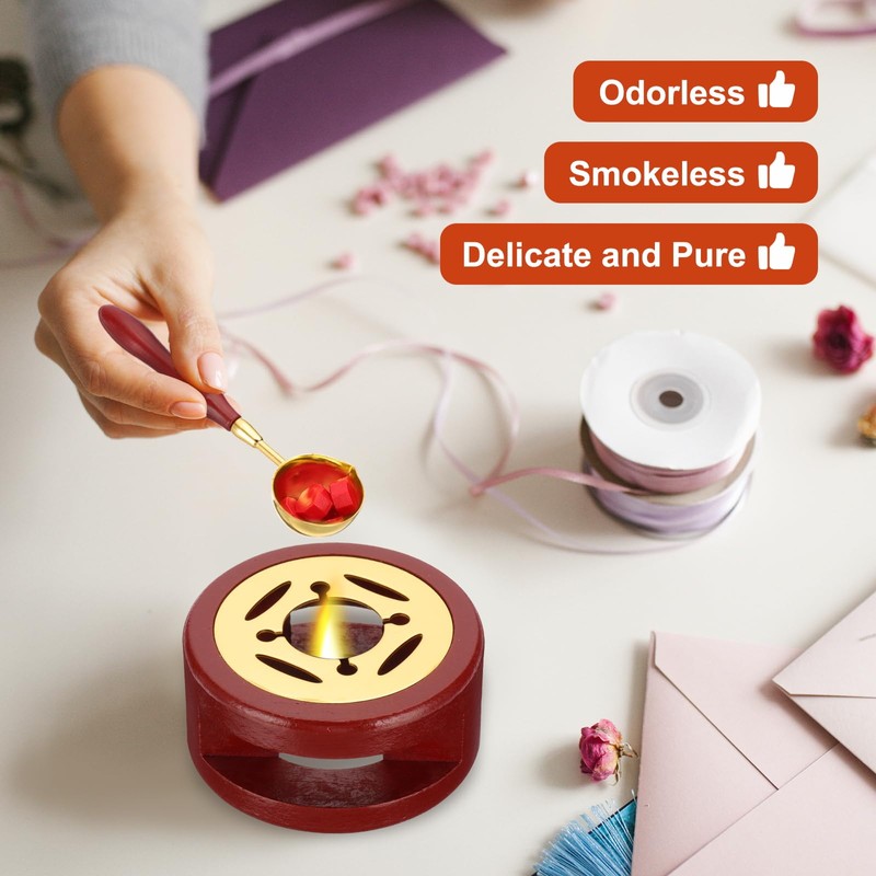 • Advantage: The color of wax beads is delicate and pure, and different colors of wax beads can be mixed to create a unique wax seal. A complete wax seal requires about 5 wax beads, which is easier to control the quantity than wax sticks. The candles included are of good quality and smokeless. The wax melting furnace has a good wooden surface texture and good heat resistance, and it is not easy to crack. It can gather heat so that the wax spoon is heated evenly and melts quickly.