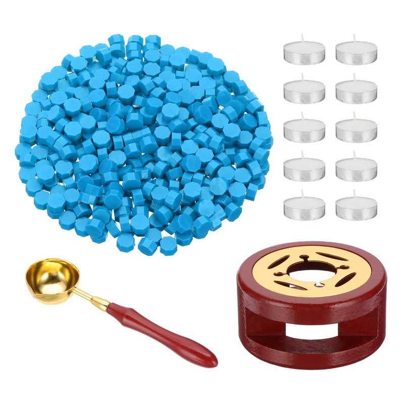 • Specification: Color: Sky Blue; Wax Bead Size: 9 x 9 mm / 0.35 x 0.2 inch(L*W); Tealight Candles Diameter: 3.7 cm/1.5 inch; Spoon Size: 11 x 3 cm/4.3 x 1.2 inch(L*W); Wax Seal Warmer Diameter: 7.5 cm/3 inch; Wax Seal Warmer Height: 3.6 cm/1.4 inch; Packaged Included: 360 Pcs x Wax Seal Beads (Contains 1 Wax Seal Warmer, 1 Spoon, 10 Tealight Candles)