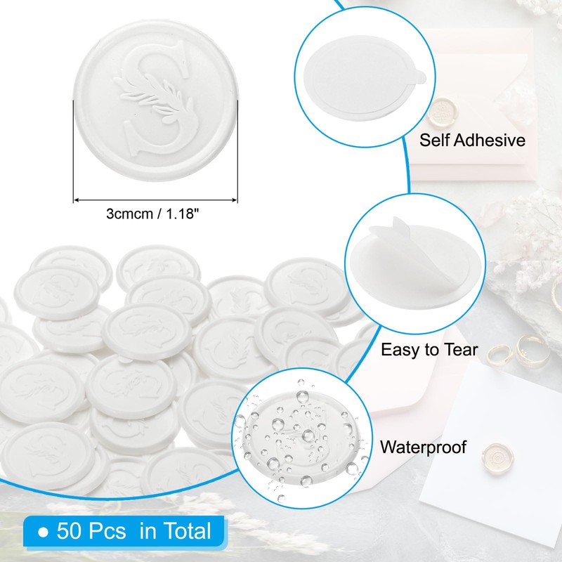 - Material: Wax; Color: White; Size: 3cm x 3cm x 0.2cm / 1.18 inch x 1.18 inch x 0.08 inch (L*W*T); Packing List: 50 x Wax Seal Stickers