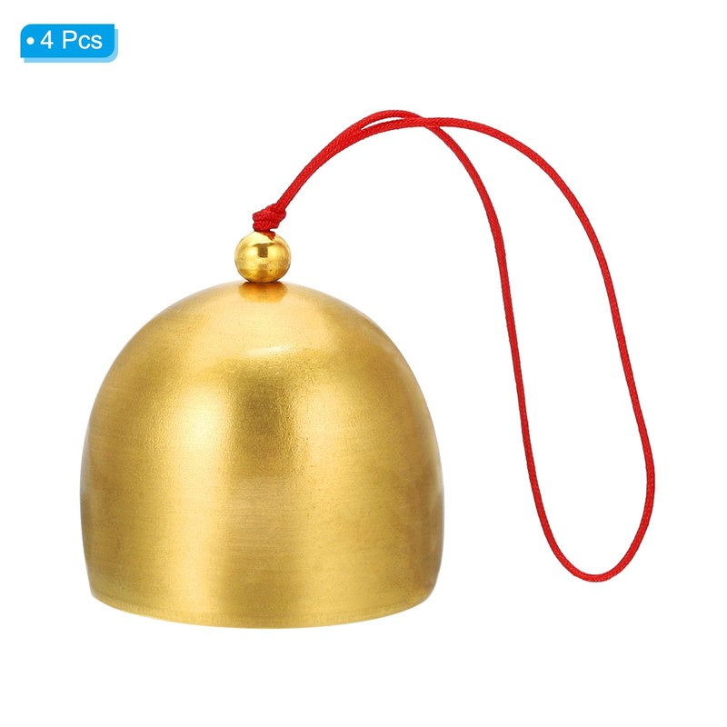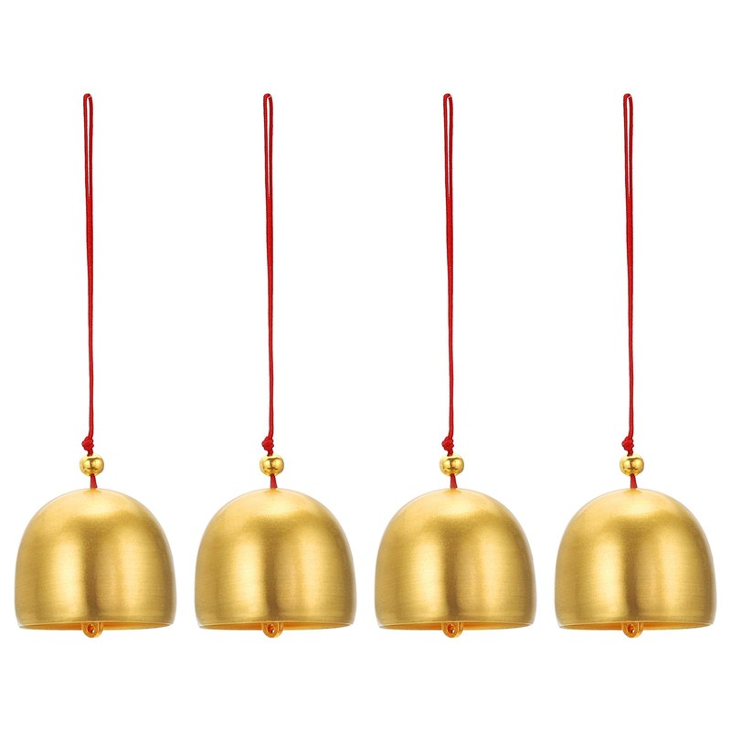 PATIKIL Wind Chime, Set of 4, Retro Temple, Outdoor Style, Metal, Chinese Wind Chime, 1.5" Diameter, For Outdoor Garden, Camping, Gold, Red