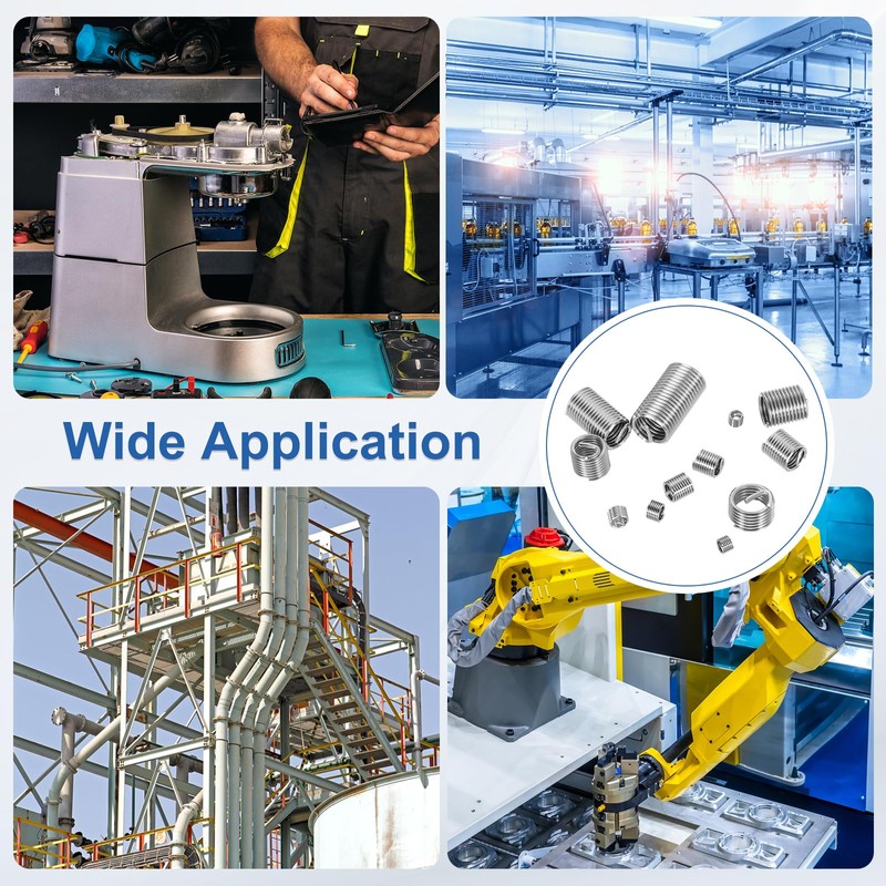 - Application: Threaded sleeves are commonly used in mechanical equipment and engineering machinery, which are the first choice for thread repair and overhaul across various industries including aviation, semiconductor equipment, automobiles, steam turbines, electronic communications, computers, lamps, molds and radiators.