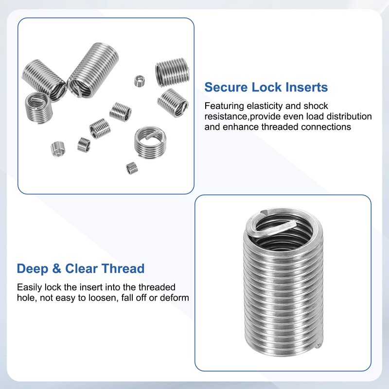 1. Crafted from 304 stainless steel, the thread insert boasts exceptional hardness, good corrosion, rust and oxidation resistance, ensuring long-lasting usage.