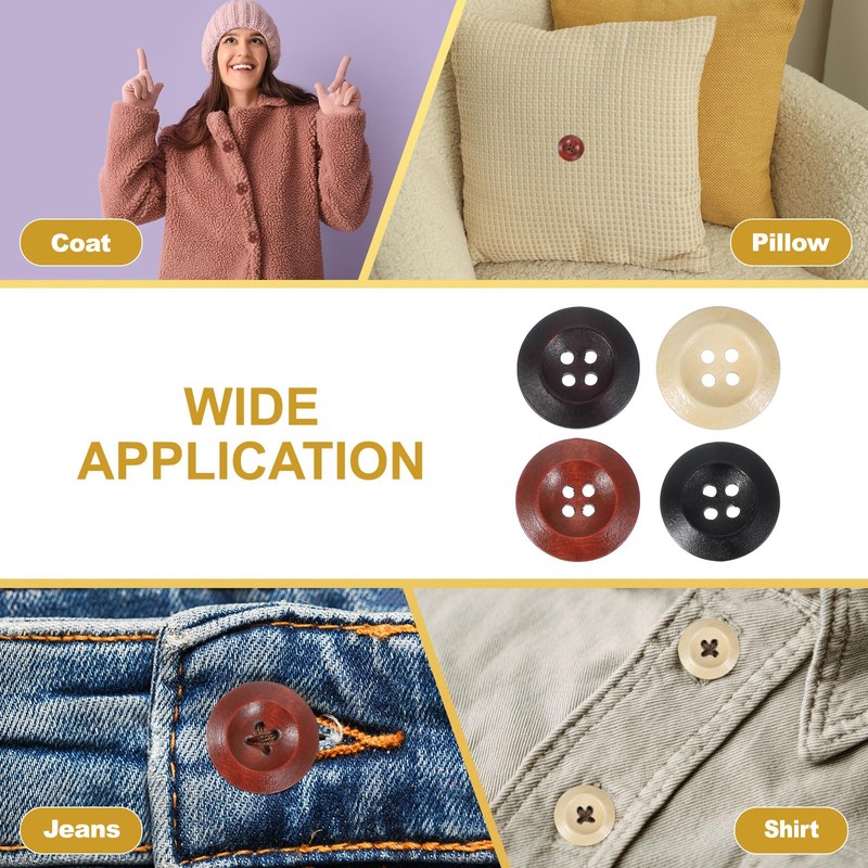 - Application: Wooden buttons can be used in most sewing and craft projects. They are suitable for clothing and home decoration, such as shirts, jackets, sweaters, skirts, hats, curtains, bags, scarves, and pillows, or for DIY crafts, such as patchwork and designing art paintings