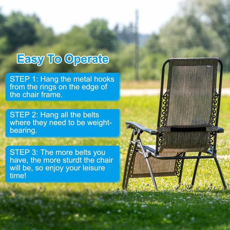 The Zero Gravity chair strap is designed for your convenience. By using this strap, the stability of your chair is improved and its durability is extended.
