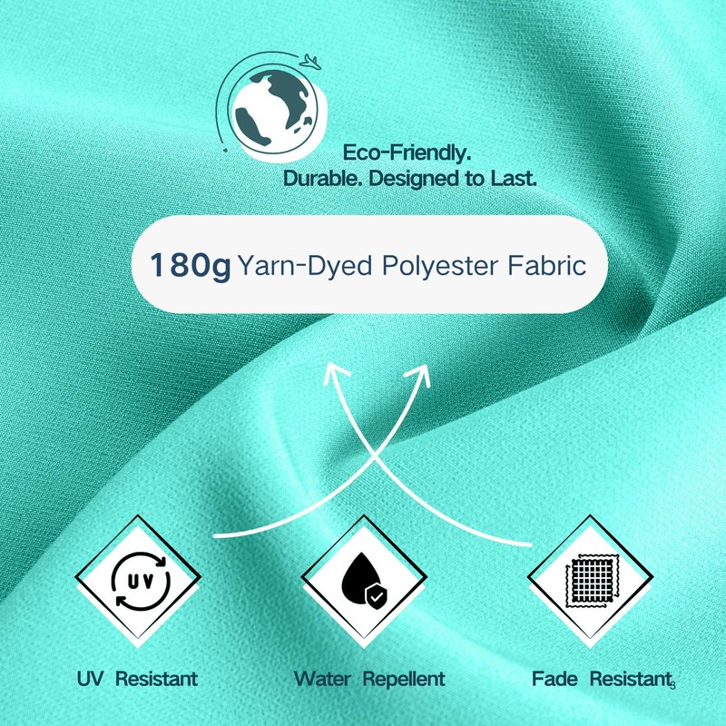 Crafted with high-density, waterproof polyester, this umbrella blocks harmful UV rays, providing excellent sun protection while withstanding rain. The fabric maintains its elasticity, color retention, and durability, ensuring long-lasting use season after season.