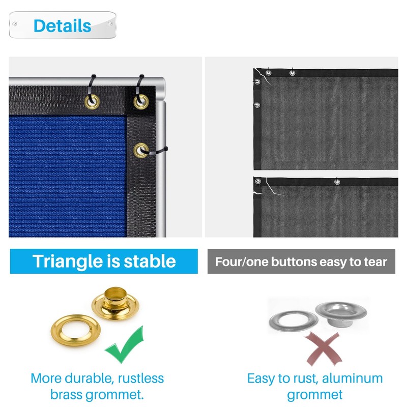 - More Durable: There are 3 brass grommets at each corner edge, not easy to rust, and the triangular distribution structure enhances the stability. Fabricated with widened black binding with double reinforced fabric on all edges to extend service life