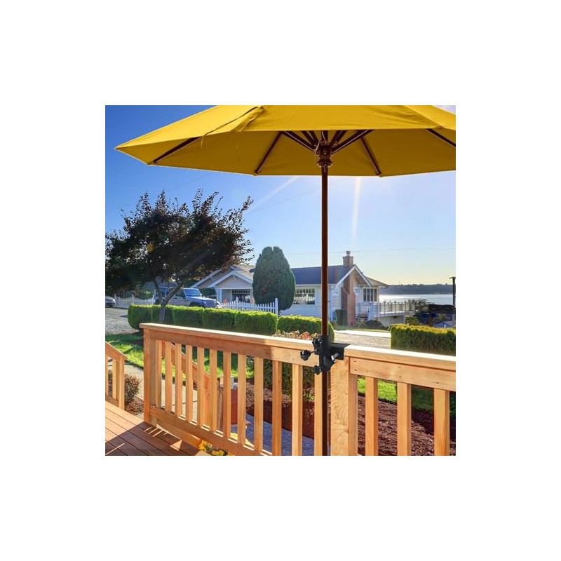 - Rustproof and Durable--Our deck umbrella clamp is made of well metal with a black powder coated surface, which is rustproof and durable, patio umbrella holder ensuring that the umbrella can be firmly fixed in place even in windy weather.