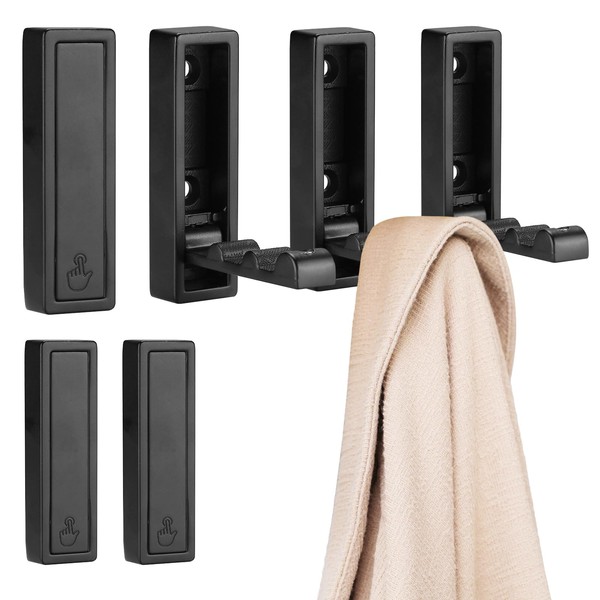 Patioer Folding Hooks 6 Pack Foldable Coat Hook Heavy Duty Wall Hooks for Hanging Coats, Towel, Hat, Backpacks (Black)