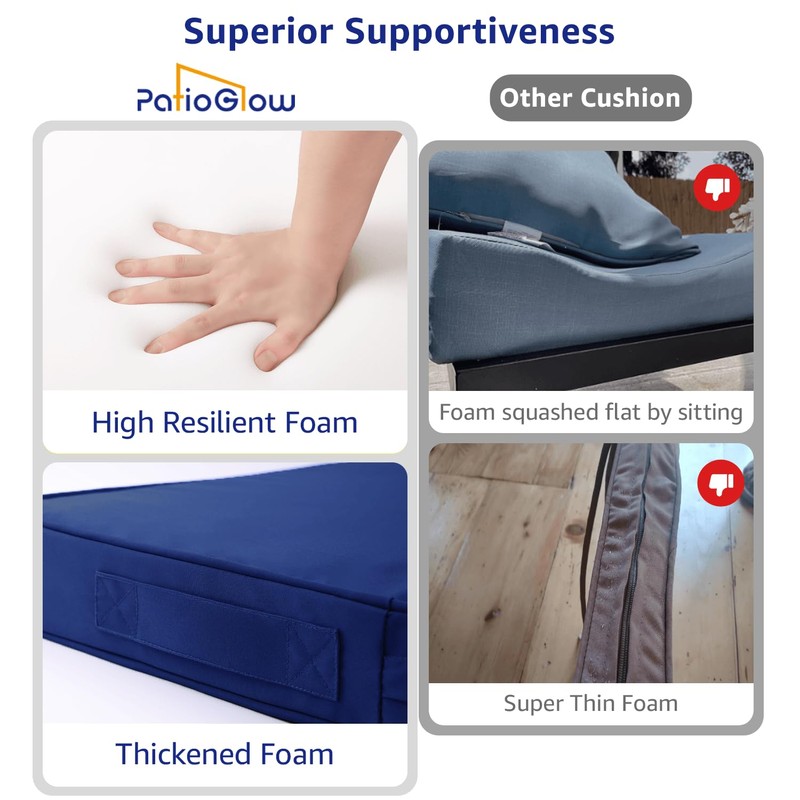 • Double Waterproof: The PatioGlow outdoor cushions features a waterproof outer cover and water-resistant foam protective layer to keep the foam dry and tidy. Simply wipe the surface of the outdoor chair pads with a cloth for effortless daily cleaning, making maintenance a breeze.
