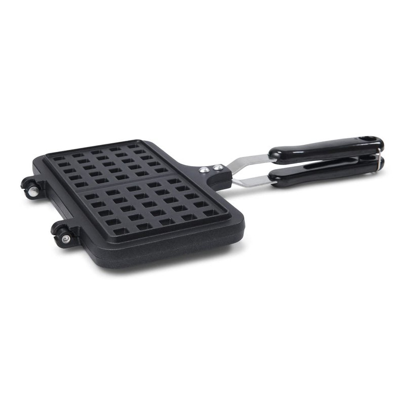 • PATISSE Double Belgian waffle machine, non-stick, each finished waffle surface is 10.5 x 10.5 cm, total length of the item including handle is 34.3 cm, comes with sturdy locking clip for perfect browning and will not accidentally open when heated. Made of durable, high quality material. Food-grade aluminium and dishwasher safe, suitable for conventional and household stovetops, not for induction cookers. de suitable de