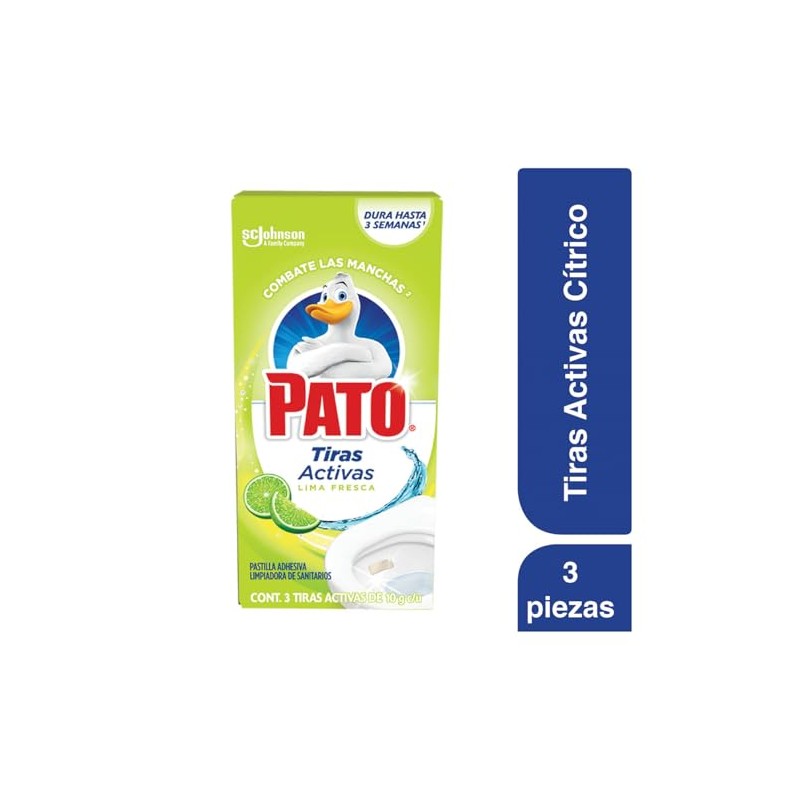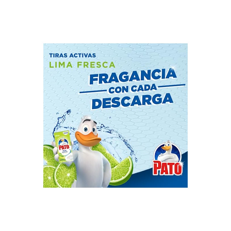Pato Tiras Activas para Inodoro, Pastilla Adhesiva Limpiadora de Sanitarios, Combate las Manchas, Aroma Lima Fresca, 3 Unidades, 10g
