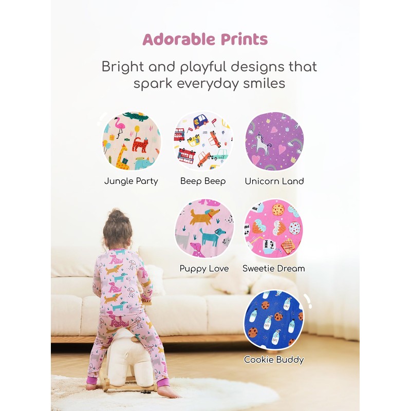 - 💫Magical Prints for Sweet Dreams💫 Featuring whimsical prints like unicorns, dinosaurs, and milk & cookies, these Pjs turn bedtime into an adventure, and make your babies and toddlers excited to slip into them every day.