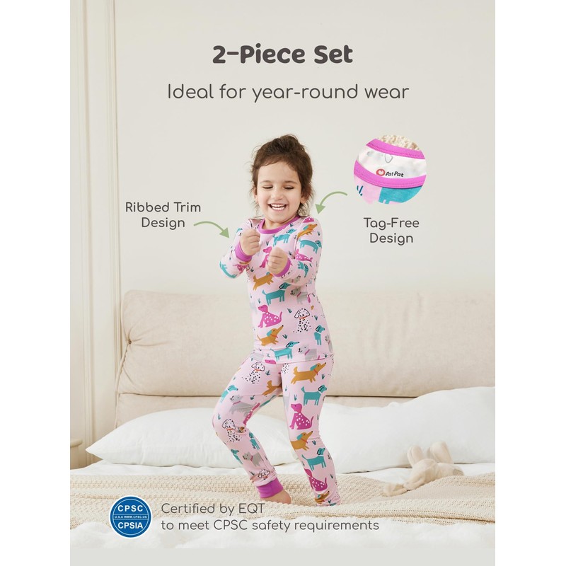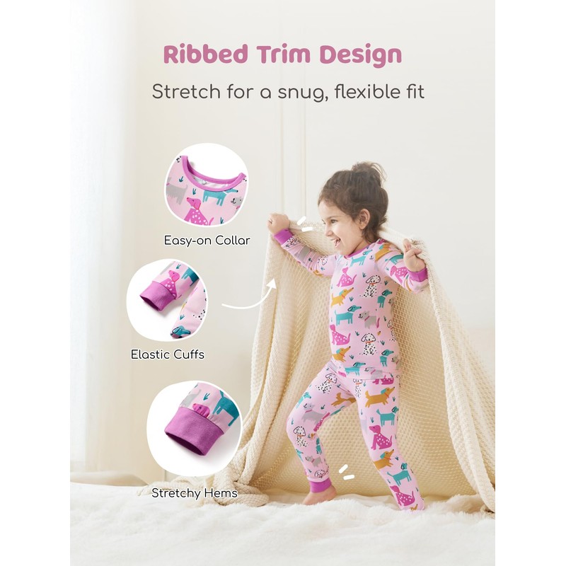 PATPAT Baby Pajama Sets with Bamboo Viscose, Snug fit Cooling Pjs for Girls Boys Kids Toddler, Cool-touch Sleepers Sleepwear, Puppy Love, 4T