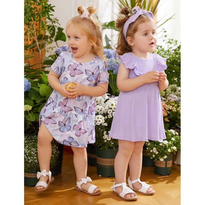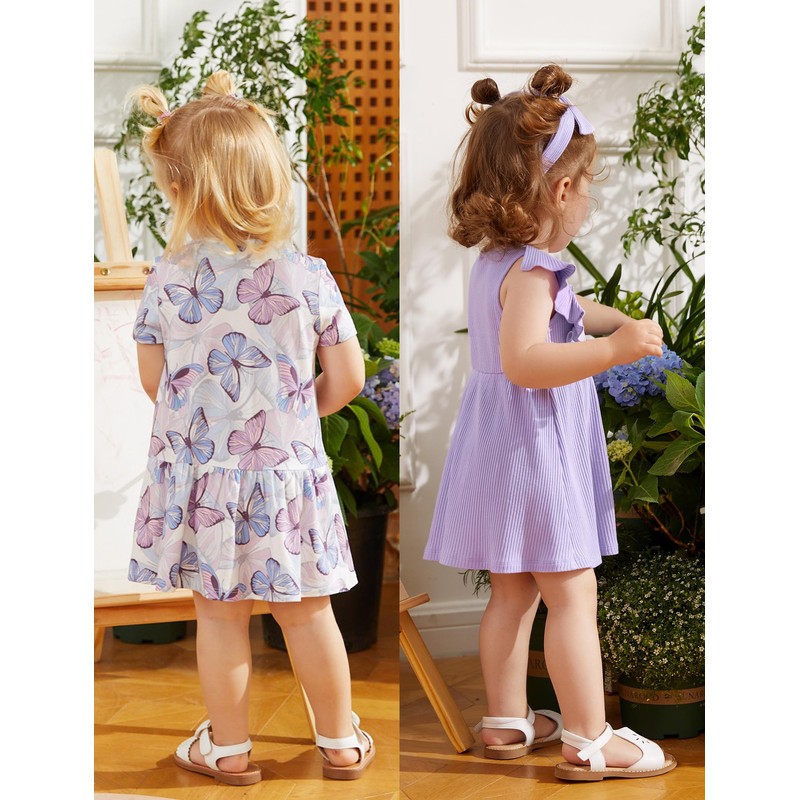 - 【PACKAGE】This includes two baby toddler dresses and a headband - a solid color ruffle sleeved dress and a short sleeved Floral printed dress, which can have different styles in summer, better match the occasion you need, and two can be easily changed, bringing two kinds of happiness at once.