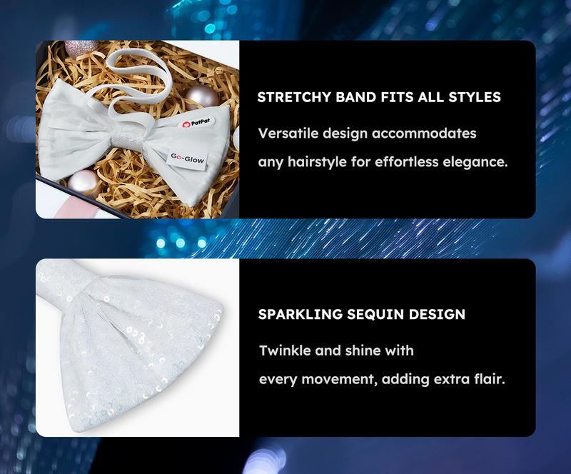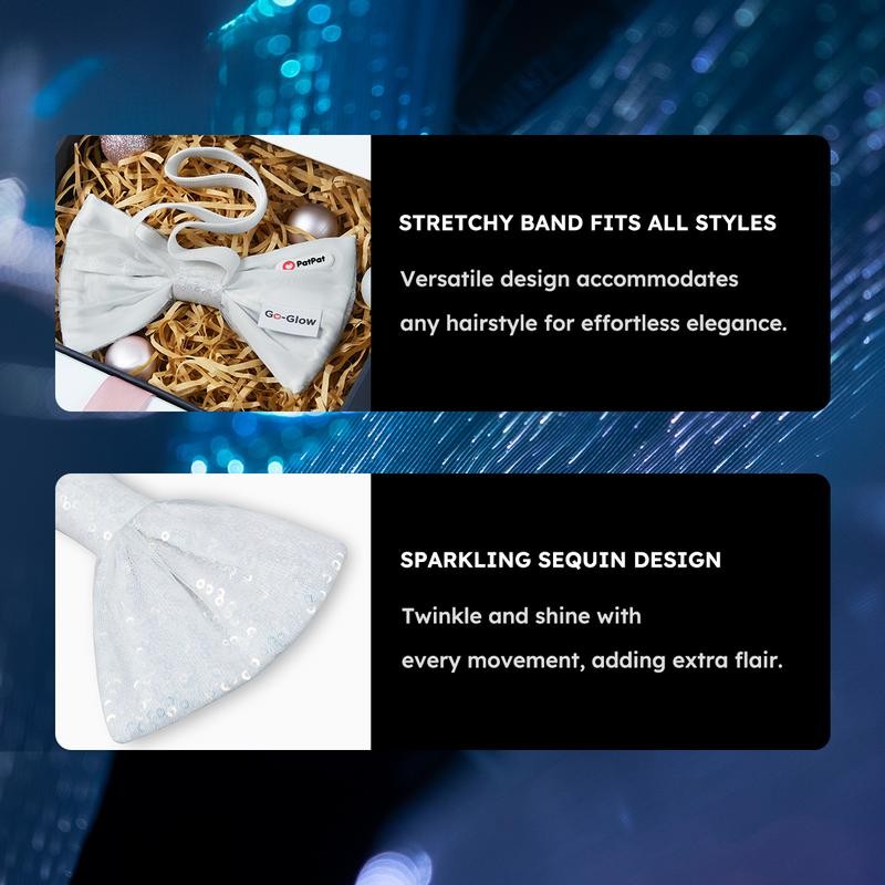 PatPat Go-Glow Bowknot Hair Tie Features Safety-Assured Glow, Bright Multi-color Options, Sparkling Sequin Design. With Exclusive Glotech Technology, Machine-washable, Safe and Long-lasting, Perfect for Parties and Ideal Gift Choice