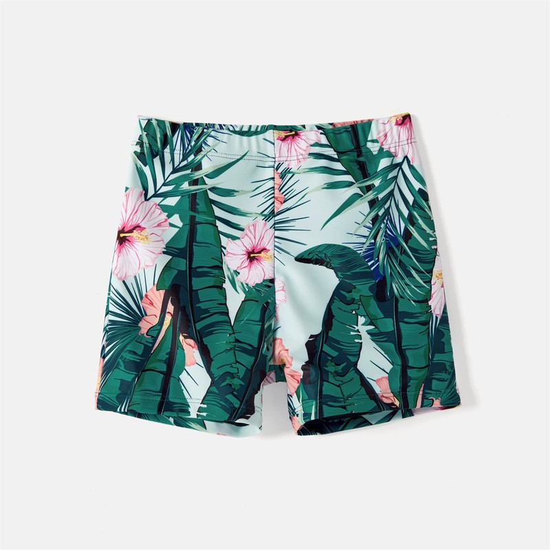 - Diseño: diseño de tirantes con volantes, estampado floral de hoja de palma tropical verde oscuro, trajes de baño de una sola pieza para mujeres y niñas, trajes de baño hawaianos para hombres y niños. Trajes de baño a juego para que toda la familia disfrute este verano