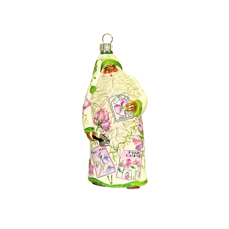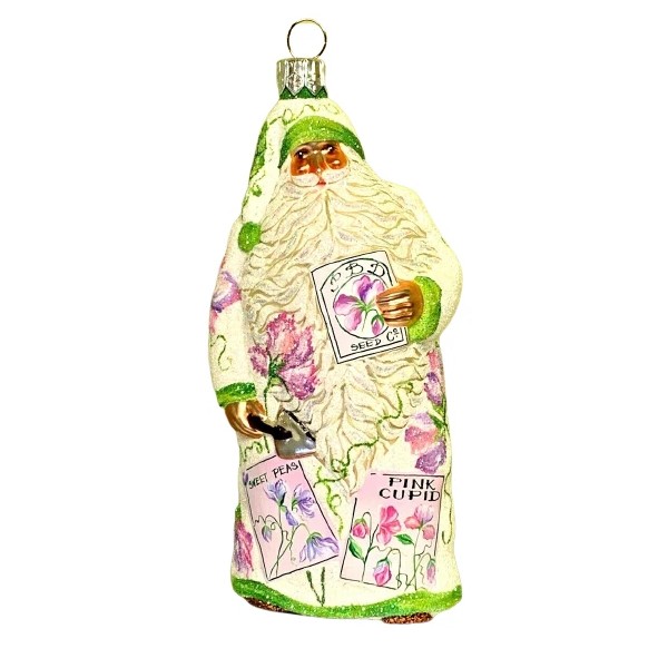 Patricia Breen Sowing Time Santa Sweet Peas Seeds Glass Glitter 2004 #2436 5.5"
