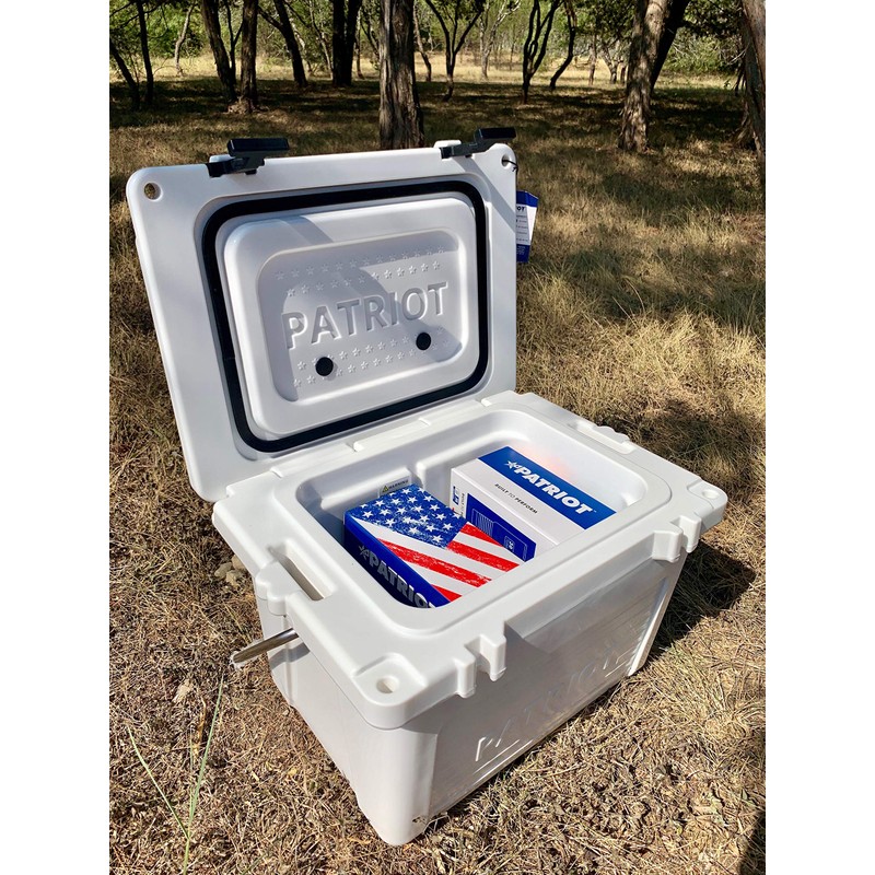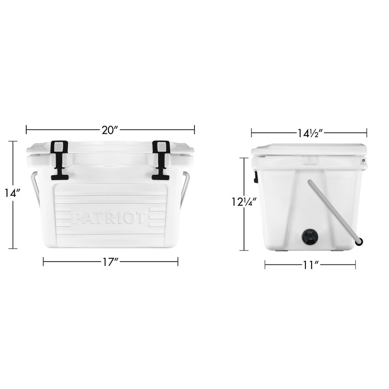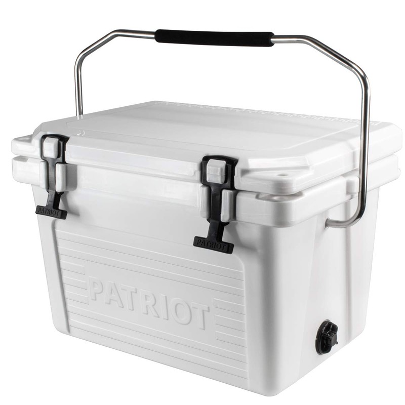 Patriot Coolers 20 Quart Rotomolded Cooler - 24 Can Ice Chest with Sturdy Handle, Heavy Duty Rubber Latches, and Convenient Quick Drain Plug (White)