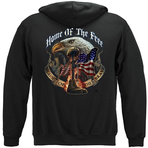 Patriotic Hooded Sweatshirt, 100% Cotton Casual Mens Shirts, Show Your Pride with our Home Of The Free Because Of The Brave Long Sleeve Sweatshirts for Men or Women (XXX-Large) Black