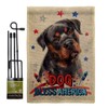 Patriotic Mahogany Rottweiler Burlap Garden Flag Set with Stand Animals Dog Puppy Spoiled Paw Canine Fur Pet Nature Farm Animal Creature Small Gift Yard House Banner Double-Sided Made In USA 13 X 18.5