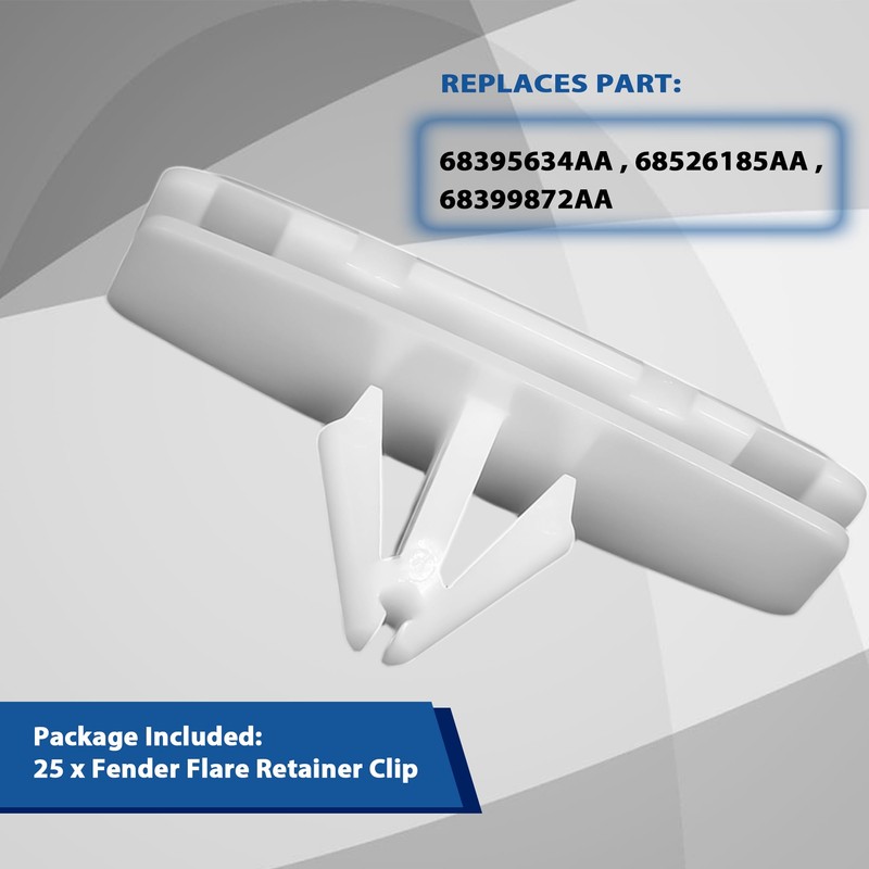 - FITMENT: Wheel flare clip compatible with Jeep Wrangler JL 2018-2024, For GLADIATOR JL 2020-2024, For RAM 1500 2019-2024. Directly replacing OEM part number: 68395634AA 68526185AA 68399872AA