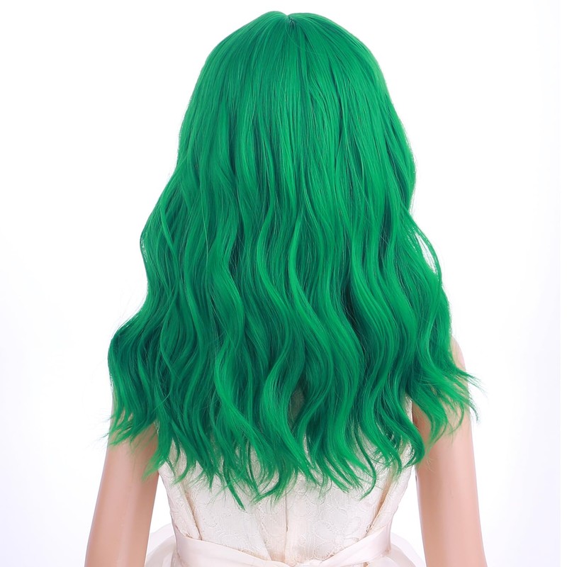 PATTNIUM Kids Wig Green Wig for Kids Green Child Wig with Bangs Short Wavy Green Wig for Girls Shoulder Length Wig Heat Resistant Synthetic Wig with Wig Cap