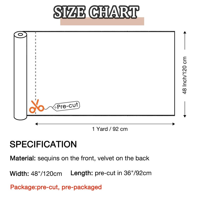🥂1. What will you get -- The reversible sequin fabric is included in the package, with the length of 1 yard and the width of 48 inches. If you choose 2pcs payette sequin fabric or more, you will receive 2 packs separate mermaid sequin fabric reversible. Please contact us if you want different size and color.