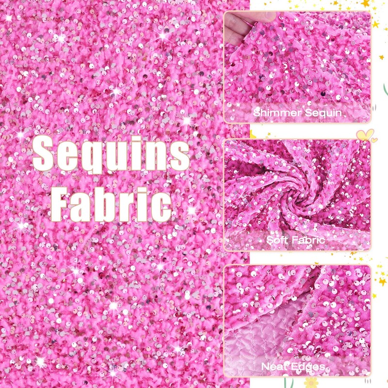 - 🥂【Luxurious Material of Pink Sequin Fabric by the Yard】The sequin fabric is made by combining two luxurious materials, 5mm sequins and velvet, resulting in a stunning combination of shimmer and softness. The sequins will come alive under different lighting conditions, creating an eye-catching and charming visual effect.