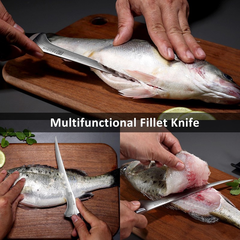 - Multi-functional Cutting Knife: This versatile filet knife effortlessly cuts through fish bones and scales while doubling as a premium meat cutter, easily do your daily kitchen tasks