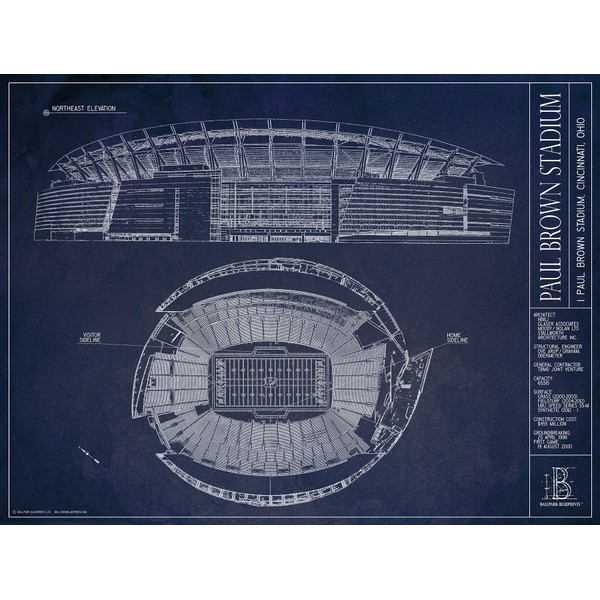 Ballpark Blueprints Paul Brown Stadium Blueprint Style Print