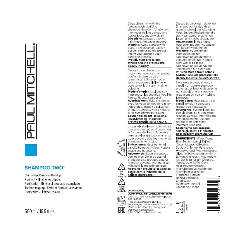 Paul Mitchell Paul Mitchell Shampoo Two, Clarifying, Removes Buildup, For All Hair Types, Especially Oily Hair