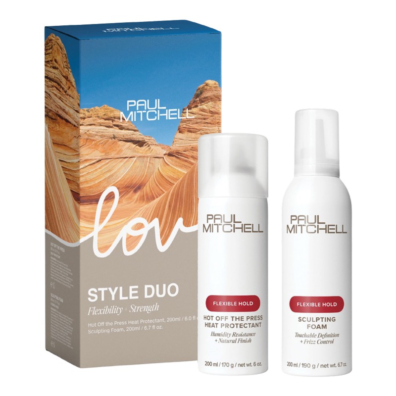 The Paul Mitchell Styler Duo Pack is the perfect solution for achieving salon-quality hair at home. This dynamic duo includes two essential styling products designed to protect and sculpt your hair effortlessly. The Paul Mitchell Styler Duo Pack combines the power of heat protection with the versatility of styling foam, ensuring your hair looks fabulous and stays healthy. Whether you're creating sleek, straight styles or voluminous curls, this pack has you covered. What is included in Paul Mitchell Styler Duo Pack? • Paul Mitchell Flexible Style Hot Off the Press 200ml • Paul Mitchell Flexible Style Sculpting Foam 200ml What are the features and benefits of Paul Mitchell Styler Duo Pack? Paul Mitchell Flexible Style Hot Off the Press: This heat protectant spray shields your hair from the damaging effects of heat styling tools, ensuring your locks remain healthy and vibrant. It also adds a touch of hold, helping to maintain your style throughout the day. Paul Mitchell Flexible Style Sculpting Foam: This versatile styling foam provides flexible hold and control, allowing you to create a variety of styles with ease. It enhances texture and volume while leaving your hair soft and manageable. Who is Paul Mitchell Styler Duo Pack for? The Paul Mitchell Styler Duo Pack is perfect for anyone looking to protect and style their hair with professional-quality products.