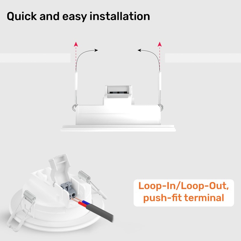 - Easy to install: The ceiling downlight is equipped with terminal blocks for direct connection to 240V power supply, no other transformer is needed, no assembly is required, the terminal blocks ensure the safe installation of the recessed light, it is more convenient to use than other LED spotlights, perfect for ceiling interior decoration.