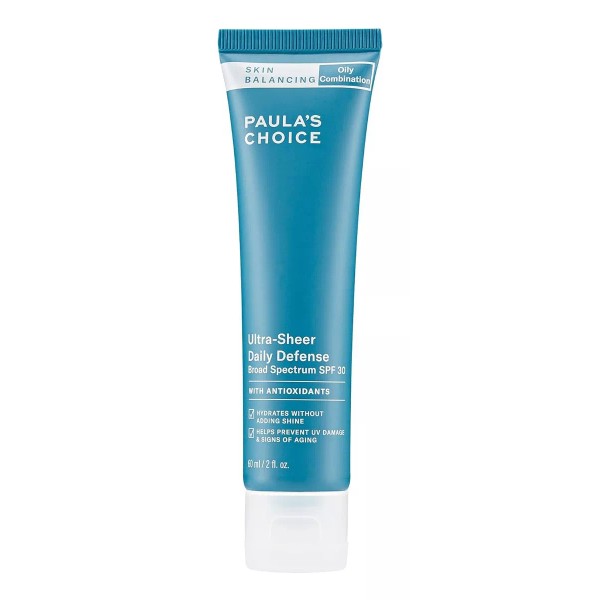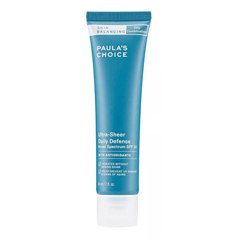 protección solar ambulante espectro matte-finish - despídase del protector solar grasiento. nuestra fórmula ligera, libre de aceite spf 30 protege su piel contra el daño de los rayos uvb y uva mientras absorbe el aceite para reducir el brillo y promover una apariencia juvenil paula.s choice - skin balance ultra-sheer daily defense es un líquido diurno que protege el sol con una hidratación saludable y un acabado mate que ayuda a mantener el exceso de brillo bajo control. el té verde y los hidratantes ayudan a suavizar y calmar la piel, minimizando la descamación y la sequedad. nuestro ultra-sheer daily spf 30 es ideal para personas con poros dilatados y obstruidos y pieles grasas o mixtas. úselo como el último paso en su rutina matutina de cuidado de la piel, después de su limpiador, tónico, exfoliante, suero y crema hidratante favoritos de paula.s choice. los productos paula.s choice están hechos con your skin en mente. si su piel es seca, grasa, combinada, envejecida, acné o propensa a las imperfecciones, sensible o sin brillo; tenemos una solución para el cuidado de la piel para ti. la búsqueda de cuidado de la piel increíble termina aquí. finalmente, lo encontraste. busque en paula.s choice soluciones de cuidado de la piel altamente efectivas para la cara - cuerpo. nuestra línea completa de limpiadores, exfoliantes, tónicos, humectantes, sueros, abrillantadores, tratamientos de manchas, maquillaje.