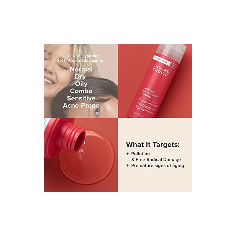 ๐ ๐ Paula's Choice-DEFENSE Hydrating Gel-to-Cream Facial Cleanser with Green Tea, Licorice, Aloe & Soy, Anti-Pollution and Free Radical Damage Protection for All Skin Types, 6.7 Ounce Bottle ๐ ๐