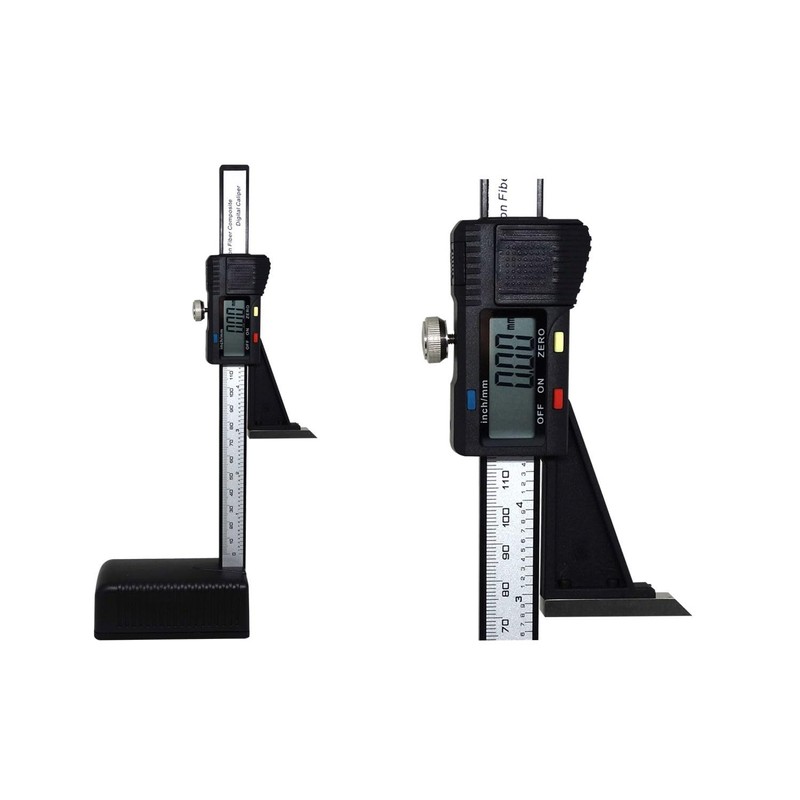 With the height gauge, heights from 0-150 mm can be measured. A relative and absolute measurement is possible. For the relative measurement, any height is defined with 0 via the "ZERO" button. Then the desired height can be measured.