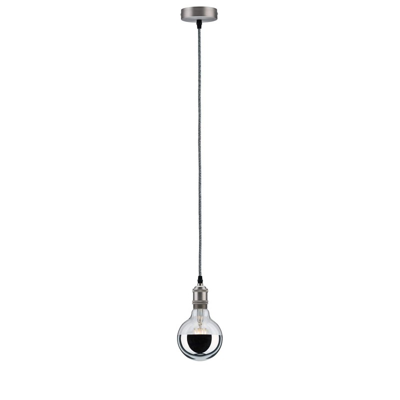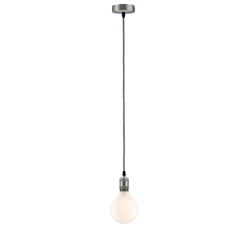 Paulmann 50322 Pendelfassung Vintage-Pendel max. 60W E27-Fassung und Stoffkabel Deckenleuchte Grau/Nickel Kabel gebürstet ohne Leuchtmittel, 200 x 4.5 x 7 cm