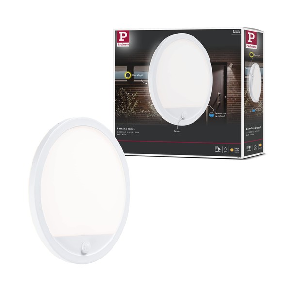 Paulmann 94662 LED Outdoor Light Panel Lamina with Motion Sensor IP44 Round Including 1 x 14.5 W Warm White Outdoor Panel Plastic Light Panel 3000 K