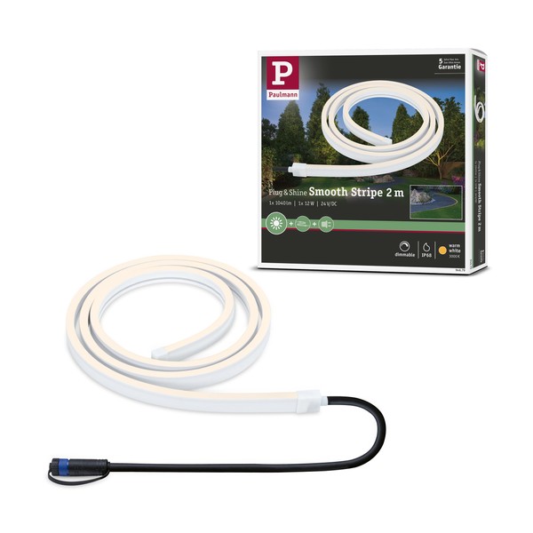 Paulmann 94679 Plug & Shine LED Outdoor Light Stripe Smooth IP68 2 m Including 1 x 11 W Dimmable White Plastic 3000 K