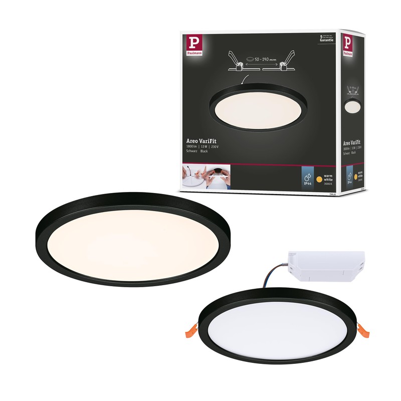 Paulmann Areo 79961 LED Panel Recessed Panel IP44 175 mm Round Including 1 x 13 W Warm White Black Plastic Lighting System 3000 K