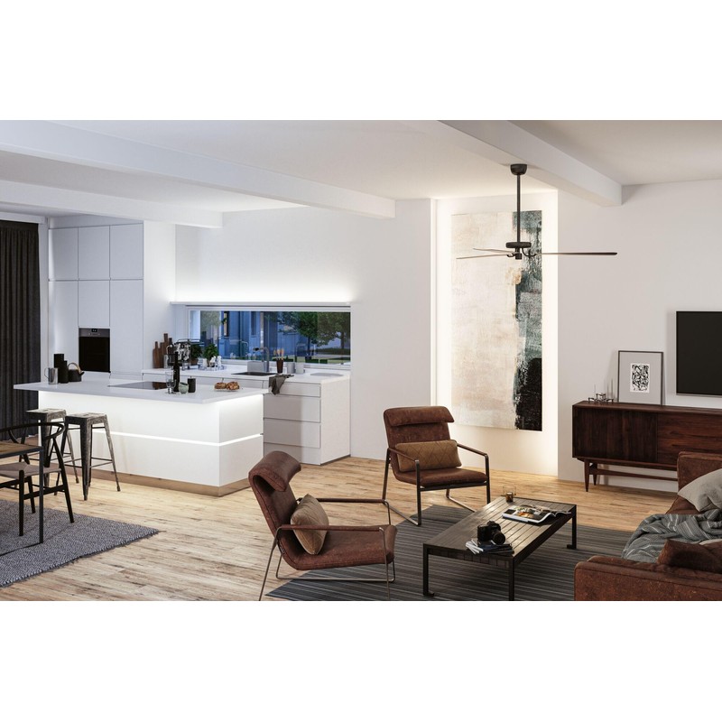 Ob Kchenarbeitsplatz, Werkstatt oder andere Arbeitsfl?chen C die MaxLED 500 Full-Line COB Strips eignen sich hervorragend als blendfreies Arbeitslicht. Das MaxLED 500 COB Basisset mit 10W, einer L?nge von 1,5m und 640 LEDs/m erzeugt ein absolut homogenes Lichtbild ohne sichtbare Lichtpunkte. Durch den Lichtverbinder ist ein nahtloses Verbinden m?glich und fhrt das lineare Lichtbild ohne Unterbrechung fort. Das Basisset enth?lt neben dem Streifen, einen 5-Pin Adapter, der die Verbindung zu allen MaxLED Zubeh?r- und Steuerungskomponenten erm?glicht. Dank der intelligenten Wei?lichtsteuerung Tunable White l?sst sich die Lichtfarbe der Strips individuell variieren - von tageslichtwei?em Arbeitslicht bis hin zu warmwei?er Entspannungsbeleuchtung ist alles m?glich. Der Strip ist mit 10 mm besonders schmal und passt damit auch in sehr filigrane LED Profile. Der breite Ausstrahlwinkel von 180 verteilt das Licht optimal ohne Schattenbildung. Die durchg?ngige Phosphorschicht schtzt die LEDs vor Staub und Feuchtigkeit, die Kontaktstellen haben IP20. Das Basisset l?sst sich mit dem passenden Einzelstrip einfach erweitern.