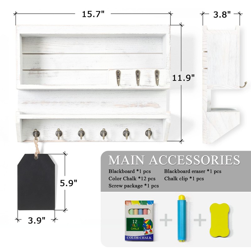 - PREMIUM SOLID WOOD MATERIAL: Key and mail holder for wall made of high-quality natural solid pine wood. It is healthy, sturdy and durable. Suitable for any style of home decoration.