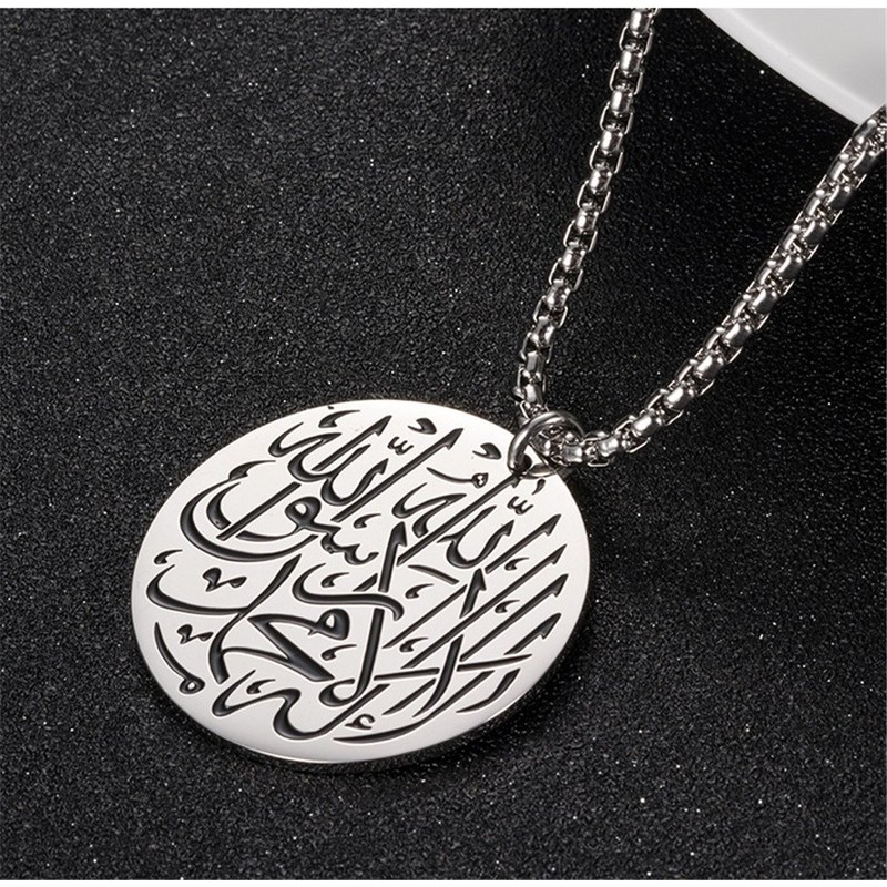 PAURO Men's Stainless Steel Round Religion Charm Pendant Necklace 24 Inches Chain Silver