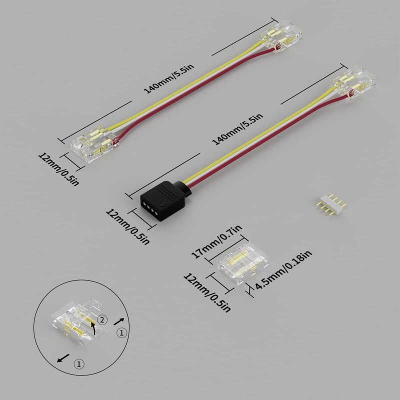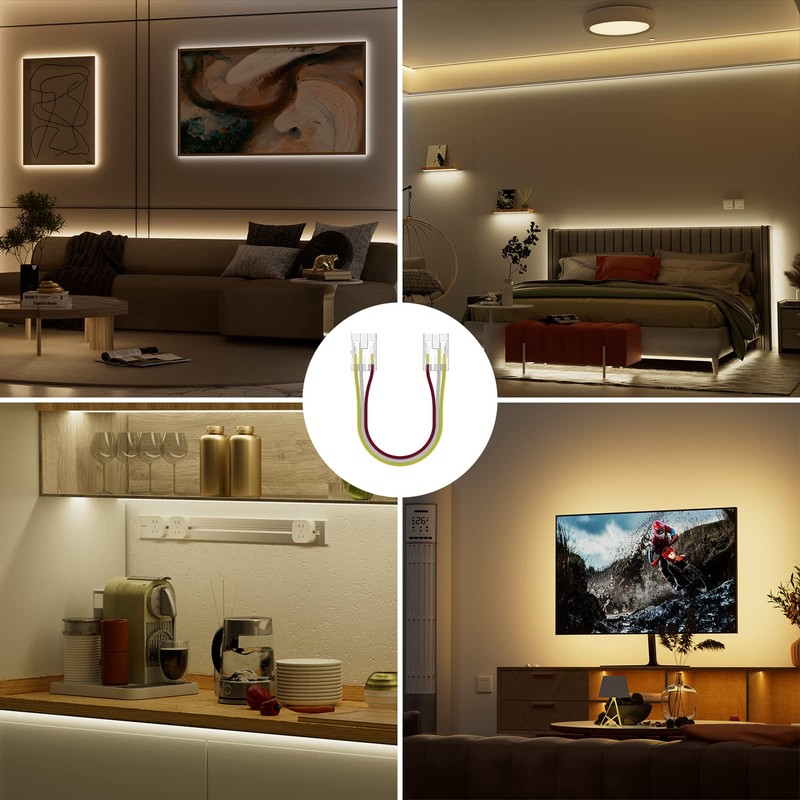 - 【Solderless Extendable Connectors】Using this CCT COB LED strip extension kit you can extend your strip light's length to the power supply or connector, eliminating the issue of limited space. These accessories let you extend and connect light strips, extend the connection between the strip light and controller/power supply, and let you achieve a corner connection