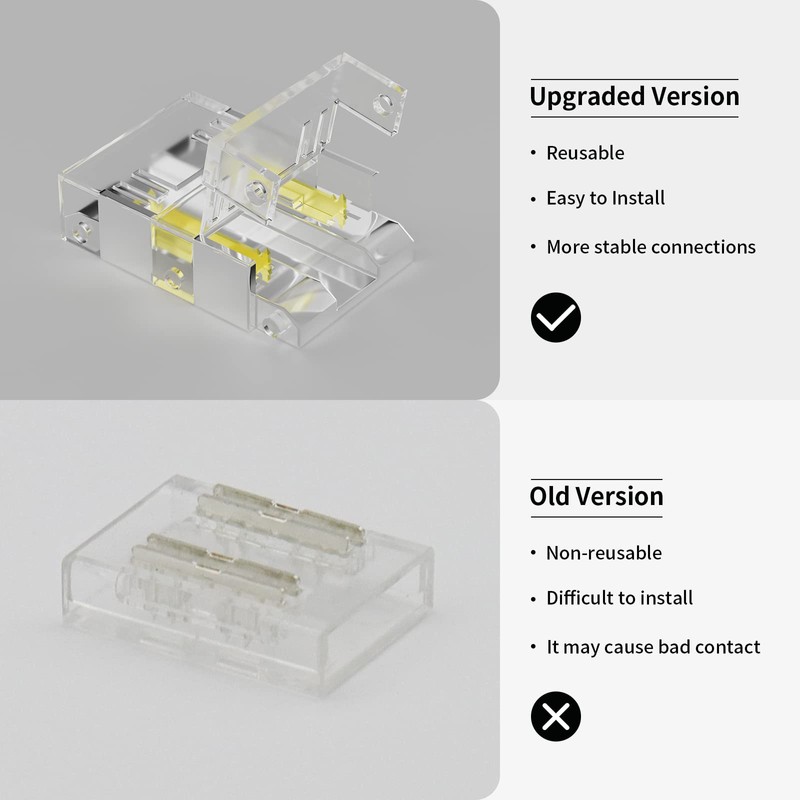 - 【Easy to Use】UPGRADED version kit,simple to install and no welding needed, this CCT COB connector kit lets you DIY for a safe and easy job that will save you time and money.The advantage of the upgraded package is that it can be reset repeatedly and the installation is more convenient