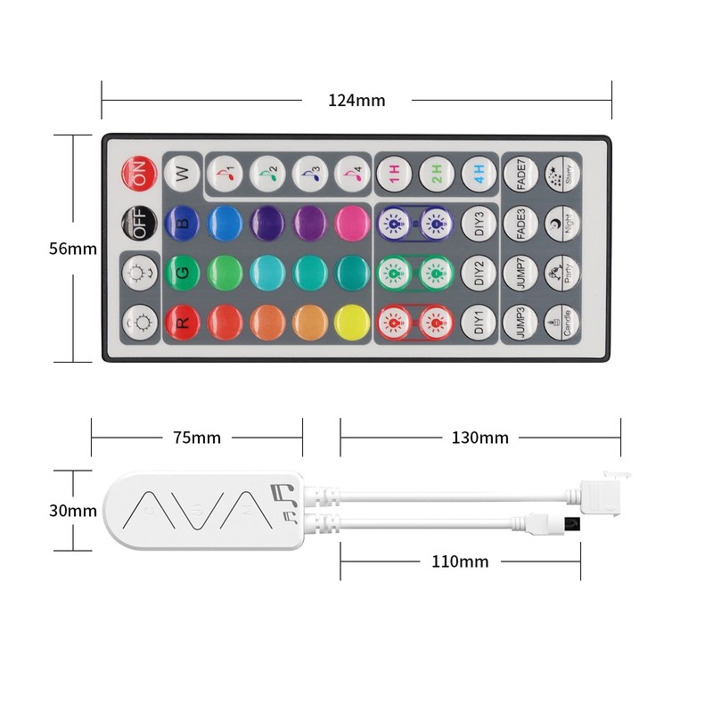 - Weit verbreitet: Die 44-Tasten-RGB-Infrarot-Fernbedienung wird h?ufig beim Ersatz von 5050 2835 3528 LED-Leuchten als Fernbedienung verwendet.